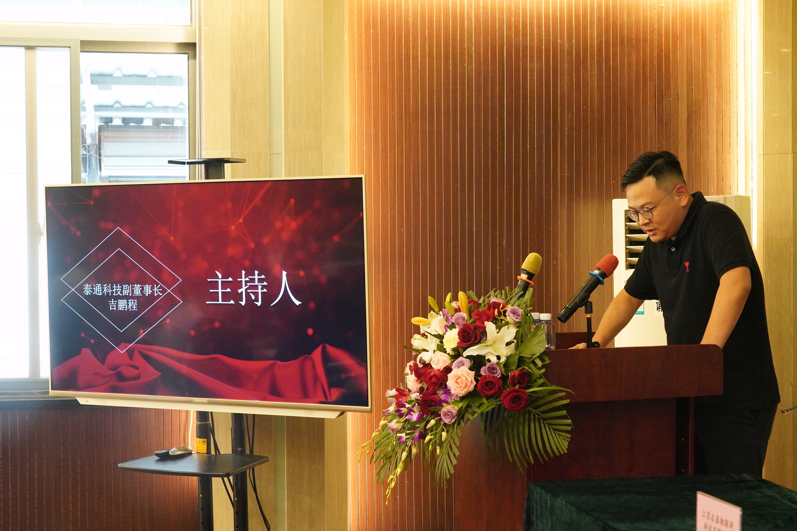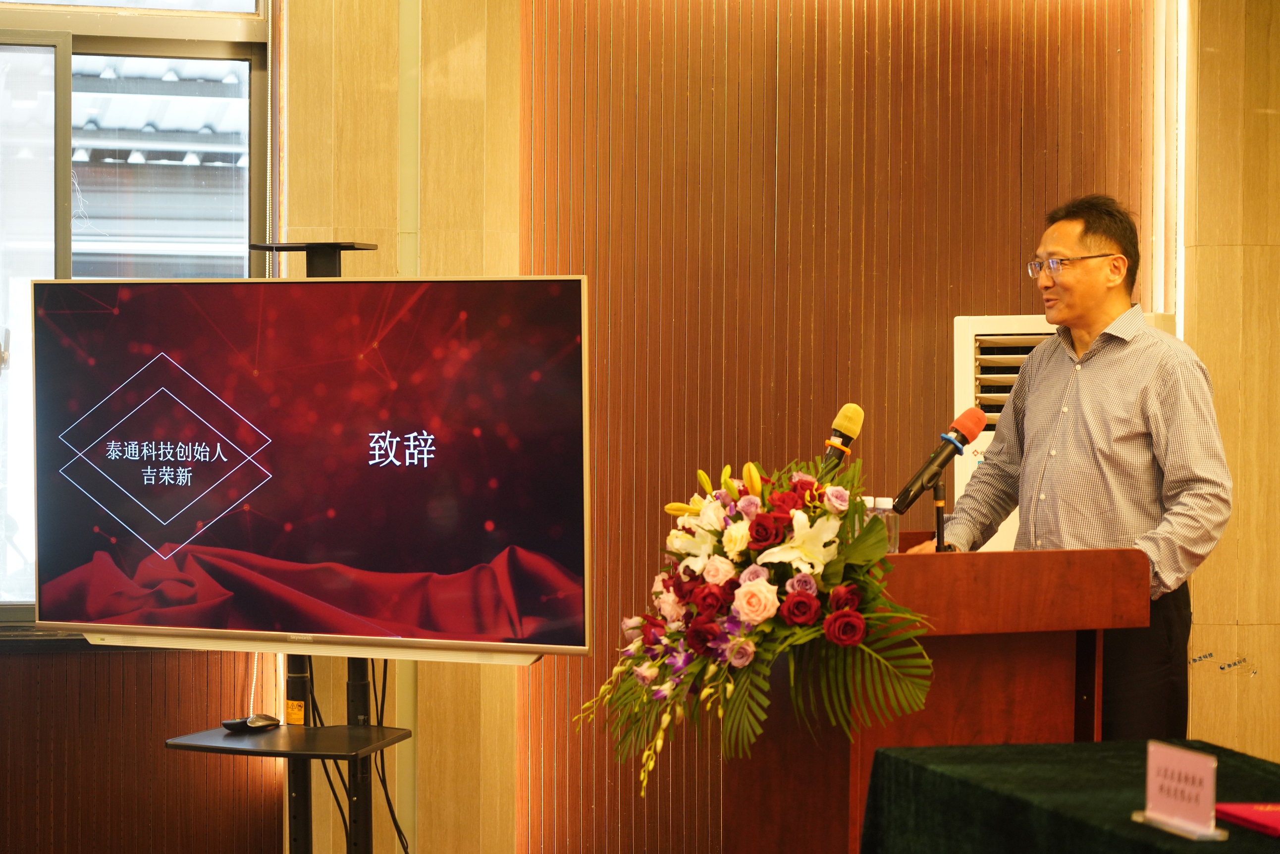 下午兩點(diǎn)三十分許,創(chuàng)始人吉榮新、泰通科技董事長(zhǎng)陳建平等公司領(lǐng)導(dǎo)陪同與會(huì)嘉賓共同步入會(huì)場(chǎng),在泰通科技副董事長(zhǎng)吉鵬程的宣布下揭牌儀式正式開(kāi)始。